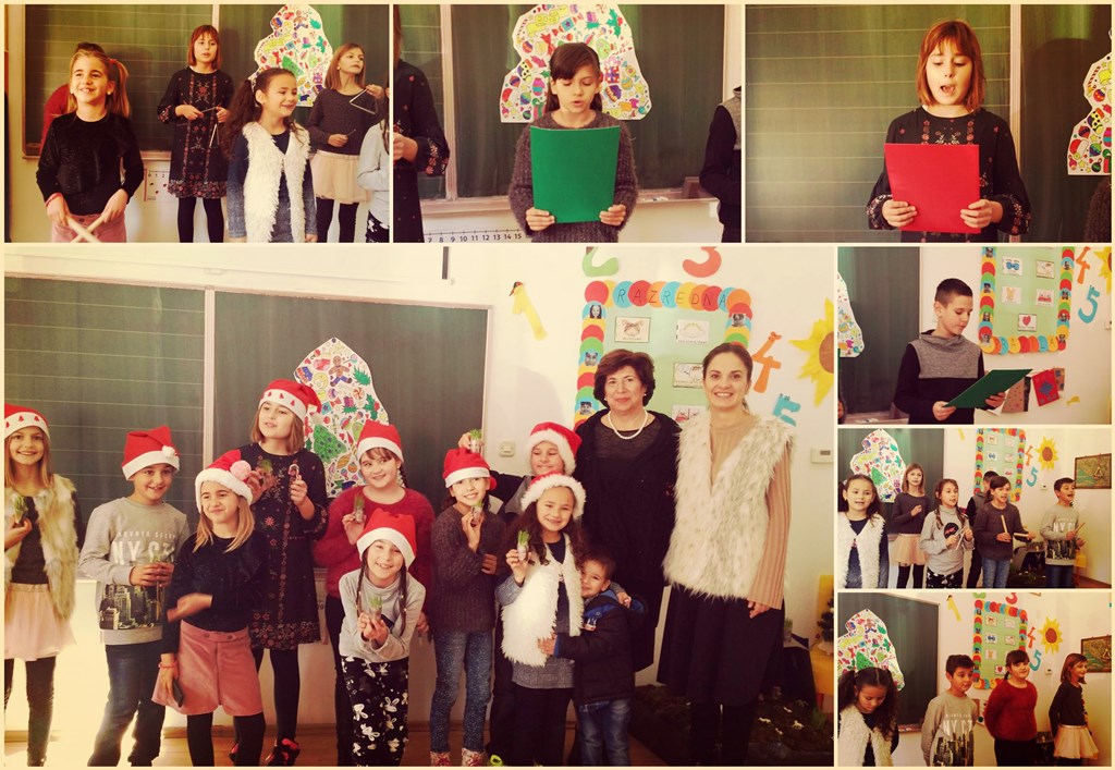 U četvrtak, 21. prosinca 2017. godine učenici od 1. do 4. razreda, Valentina Nuraj, Manuela Obrvan, Eva Simat, Petar Simat, Leonarda Sršen, Monika Sršen, Ivana Šimunović, Anamarija Veraja i Nikola Veraja, s učiteljicom Anom Ćužić pripremili su pravu božićnu poslasticu svojim roditeljima i ravnateljici Boženi Nikoletić koja ih je ovom prigodom posjetila. Iščekujući Božić i novu 2018. godinu učenici su uvježbali božićne i novogodišnje igrokaze, recitacije i pjesme i svojoj publici su pokazali da je ovo blagdansko vrijeme njima najdraže. Naravno, nije izostala ni čestitka i dobre želje.