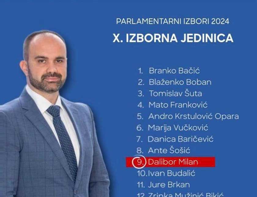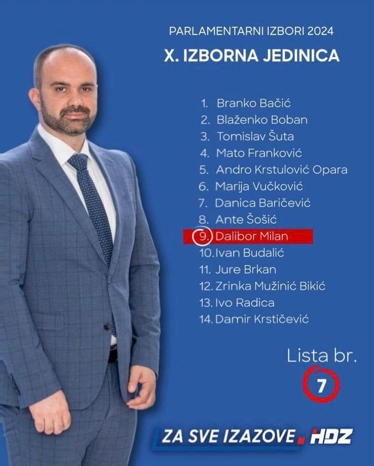 Dalibor Milan – kandidat broj 9 na listi broj 7, listi Hrvatske demokratske zajednice