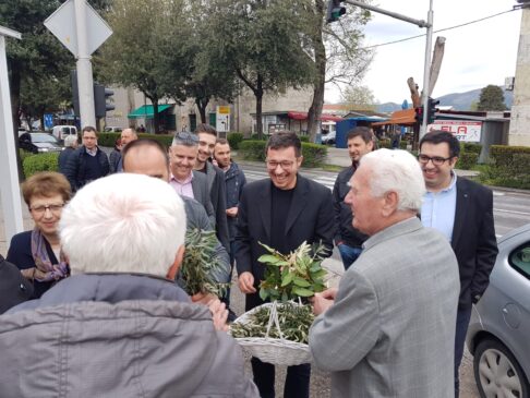 Mladež HDZ-a predvođena gradonačelnikom Daliborom Milanom građanima dijelila maslinove grančice