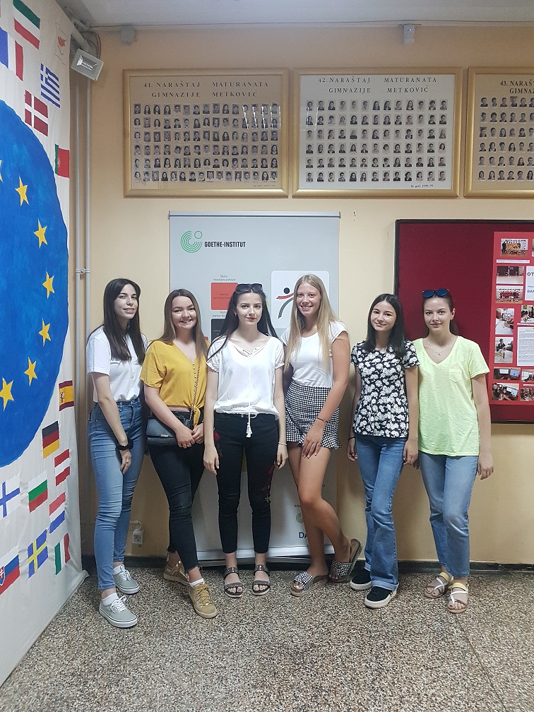 Ovogodišnje stipendije Goethe Instituta dobilo je 6 učenica Gimnazije Metković. Učenice Tina Gnječ, Ana Udženija, Antonia Vladimir, Tamara Matuško, Danijela Šimić i Helena Šimić za svoj rad i trud kako u redovnoj nastavi tako i u izvannastavnim aktivnostima njemačkoga jezika, nagrađene su trotjednom stipendijom Goethe Instituta.