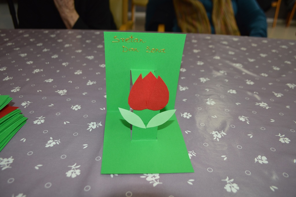 Izrađivale su se zanimljive čestitke s motivom tulipana, kako bi se sutra, 8. ožujka, ženama mogao pokloniti cvijet koji ne vene. Korisnici su se našalili, budući da su na kreativnoj radionici bile većinom žene, da čestitke prave sebi, ali muškarci koji su izrađivali čestitke sigurno znaju kome će je pokloniti.