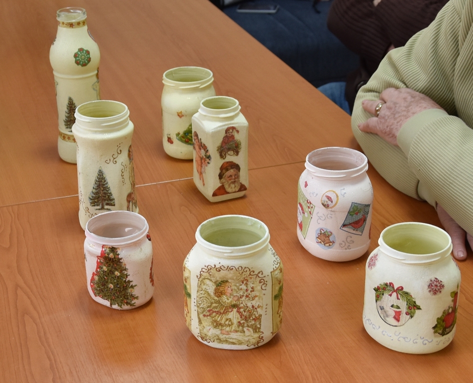 Na današnjoj radionici staklenke su se prebojavale i ukrašavale izrescima ukrasnih salveta božićne tematike, a svaki sudionik svoj uradak je mogao ponijeti kući.
