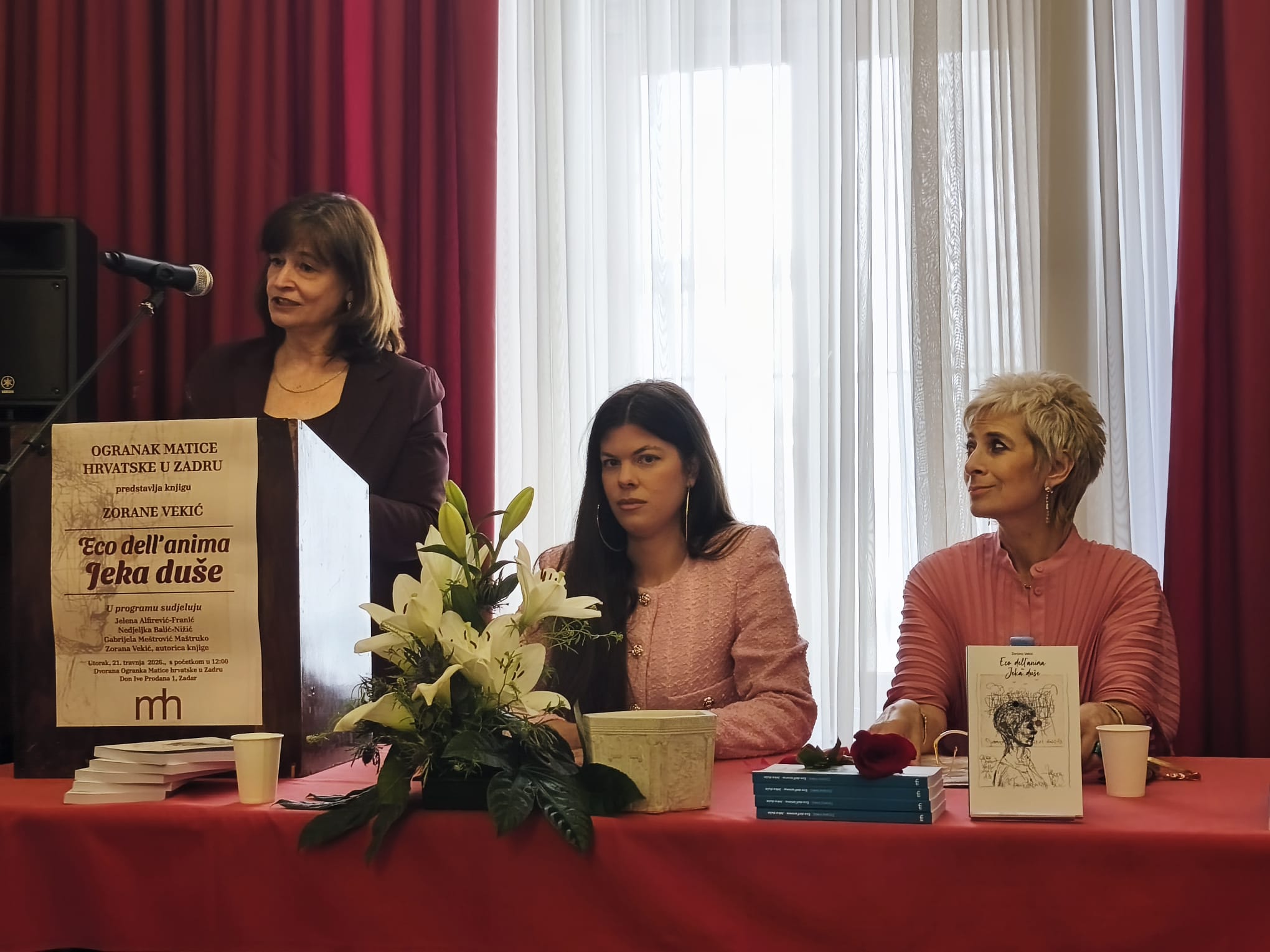 Ogranak Matice hrvatske u Zadru predstavio je dvojezičnu zbirku pjesama i eseja Zorane Vekić: Eco dell’anima /Jeka duše. Na početku se okupljenima obratio profesor Radomir Jurić, predsjednik zadarskoga Ogranka, nakladnika knjige. Izrazio je zadovoljstvo što se dvije godina nakon što je objavljena njena prva zbirka pjesama, uspješna suradnja nastavlja i dalje, javlja Zadarski list.