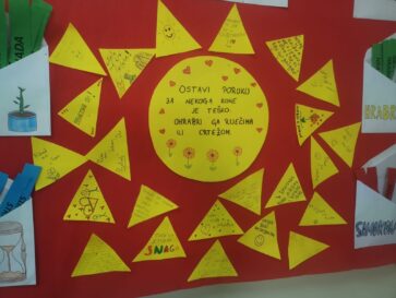 Učenici su u sklopu projekta također uredili jako zanimljiv pano u školskoj knjižnici i ostavili poruke za svoje prijatelje kojima je cilj ohrabriti ih kada se osjećaju loše.