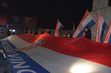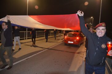 Pred polazak u Vukovar na mostu preko Bosuta izvjesili su veliku hrvatskju zastavu koja je mamila poglede domaćina.