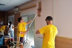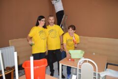 U Domu za odrasle osobe i rehabilitaciju u Metkoviću članovi volonterskog tima GRAWE osiguranja danas boje zidove blagavaonice i hodnika.