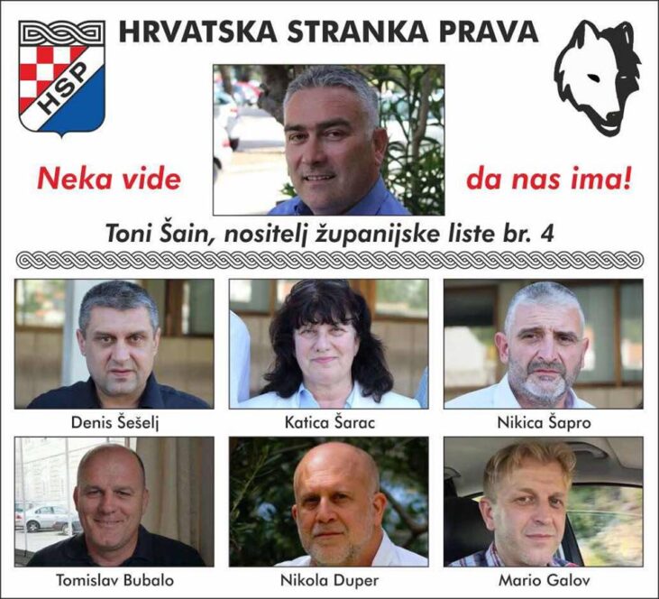 Listu HSP-a županije pod rednim brojem 4. predvodi Toni Šain a u Gradu Metkoviću pod istim rednim brojem 4. nositelj liste je Mario Galov.