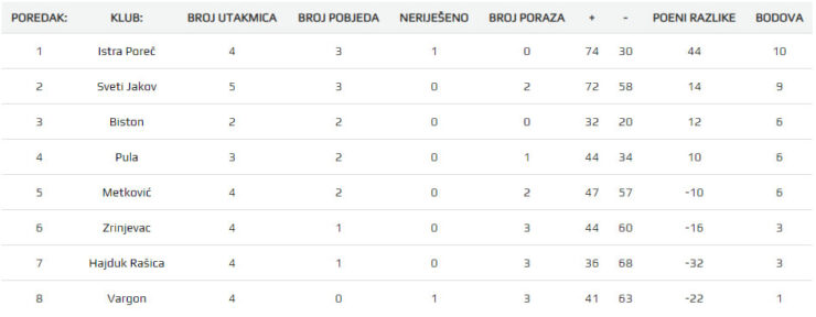 BK Hajduk Rašica je povratnik u Super ligu Hrvatske i prvenstvenu sezonu nije dobro otvorio. U prva tri kola nanizali su poraze, doma od Svetog Jakova i Pule te u gostima od Istre Poreč. U posljednjem kolu doma su pobijedili Vargon te sa 3 boda zauzimaju sedmo mjesto na ljestvici.