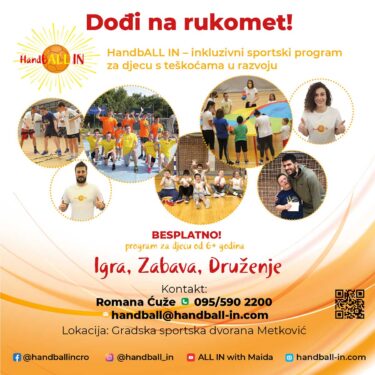 HandbALL IN je sportski program koji je drugačija od drugih jer u svoje redove upisuje djecu i mlade s teškoćama u razvoju. Program je započeo s radom prije tri godine u Zagrebu, a od ove će jeseni i djeca iz Metkovića i okolice moći uživati u njemu. Zahvaljujući podršci Grada Metkovića koji sufinancira ovaj projekt, program će biti potpuno besplatan za svu djecu i mlade s teškoćama u razvoju.