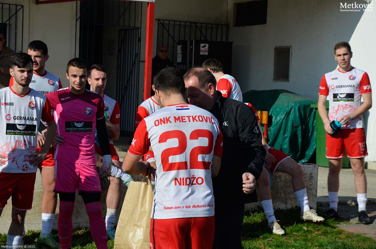 Seniori ONK Metković su iskoristili priliku pred početak županijskog derbija sa Slavenom kako bi se oprostili od svoga, sad već skoro bivšeg predsjednika Ivice Kaleba – Rafe. Tom prilikom su mu uručili prigodne poklone, a cijeli trenutak je ovjekovječen i zajedničkom fotografijom.