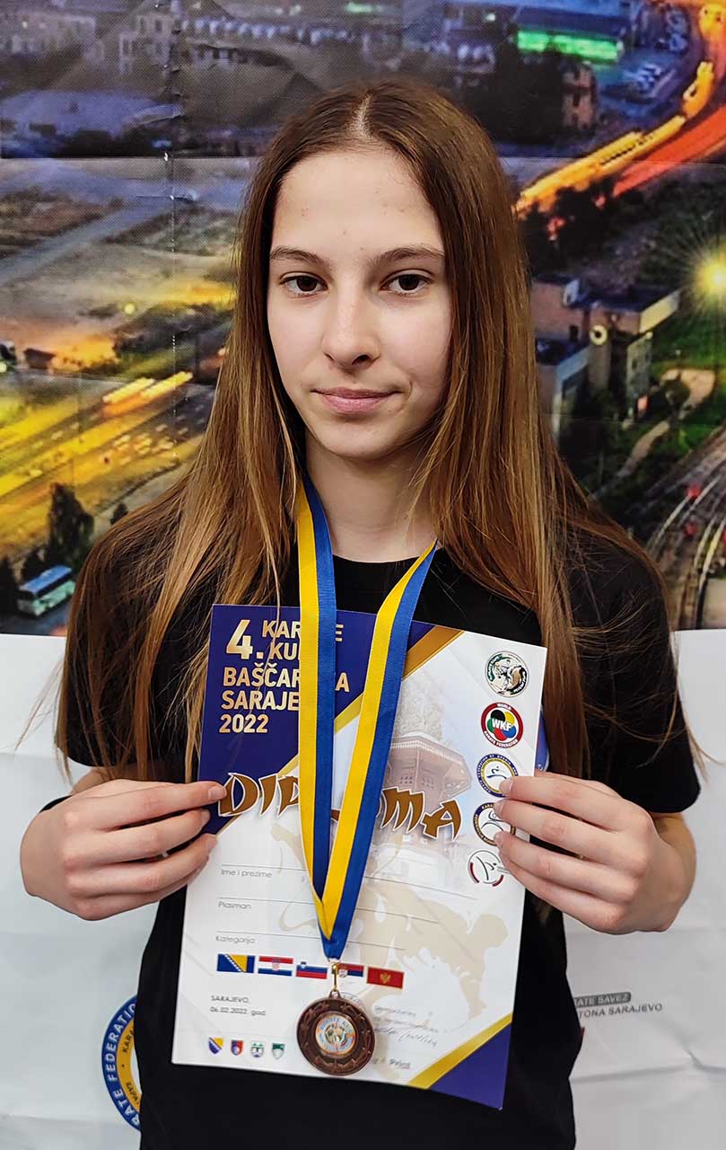 KATJA JERKOVIĆ, bronca kadetkinje – 47 kg, prvo kola pobjeda, drugo kolo gubi i u repasažu za broncu pobjeđuje.